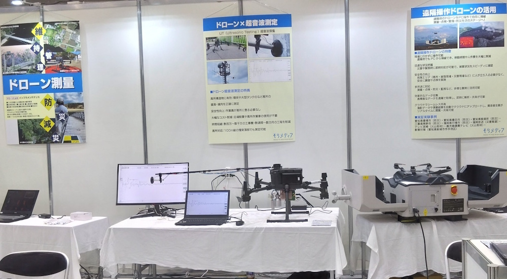 9月24・25日にポートメッセなごやで行われましたドローンサミットにて、中京テレビ「そらメディア」様のご協力の元で超音波測定ドローンを出品させて戴きました。